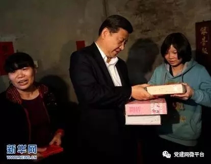 2016年2月2日,习近平来到江西井冈山市茅坪乡神山村。在村里,家家都忙着准备年货,习近平每到一处,都向乡亲们问好。看到一家正在打糍粑,习近平饶有兴致参与打了起来。习近平还给贫困户送去年货,给孩子们送去书包,祝家家都把年过好。在贫困户张成德家中,老乡端上热气腾腾的米果请总书记品尝。女主人说,总书记给全国人民当家当得好,老百姓感到很幸福。习近平回应她说,我们国家是人民当家作主,包括我在内,所有领导干部都是人民勤务员。