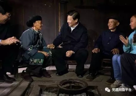2013年11月3日,习近平在湖南湘西土家族苗族自治州花垣县排碧乡十八洞村苗族村民施齐文家中同一家人促膝交谈。习近平同一家人算收支账,询问有什么困难、有什么打算,察看了他家的谷仓、床铺、灶房、猪圈,勉励一家人增强信心,在党和政府关心下用勤劳和智慧创造美好生活。