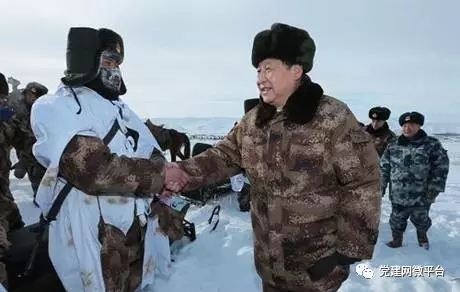 2014年1月26日上午,习近平来到祖国边疆的内蒙古阿尔山,冒着零下30多摄氏度的严寒,迎风踏雪慰问在边防线上巡逻执勤的官兵。习近平称赞说,你们战风雪、斗严寒,穿行在林海雪原,巡逻在边防线上,我很受感动。