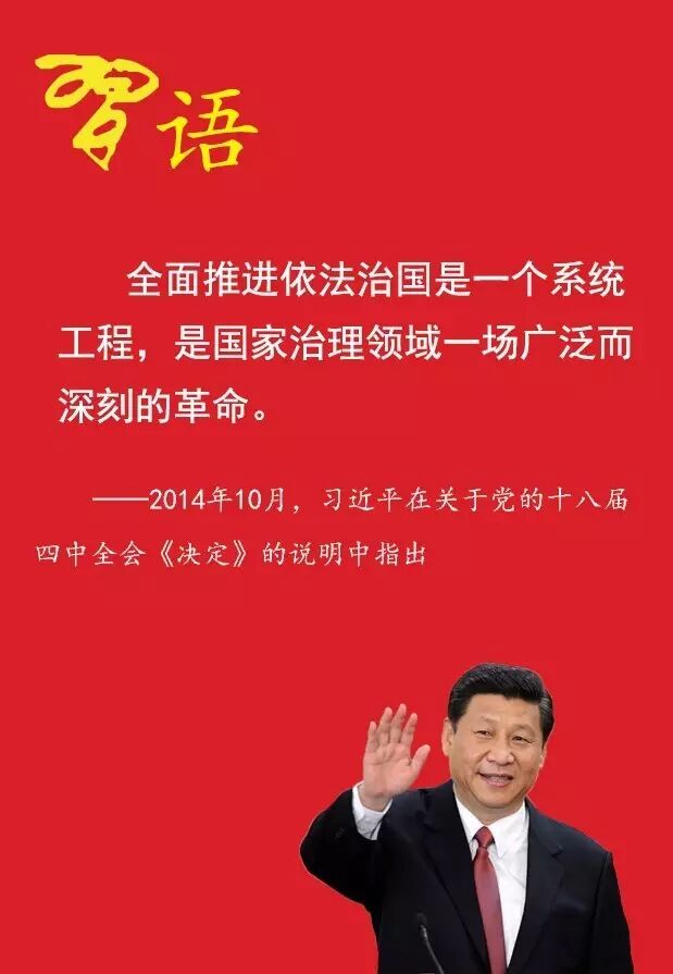 全面依法治国是政治体制改革的重要组成部分。2014年10月,习近平在关于党的十八届四中全会《中共中央关于全面推进依法治国若干重大问题的决定》的说明中指出:“全面推进依法治国是一个系统工程,是国家治理领域一场广泛而深刻的革命。”