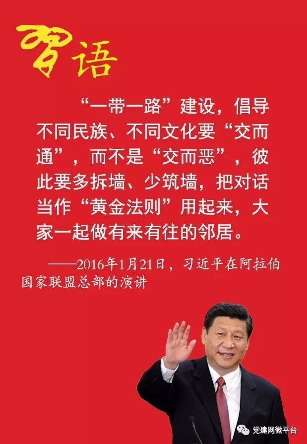 习近平表示:“我们在中东不找代理人,而是劝和促谈;不搞势力范围,而是推动大家一起加入‘一带一路’朋友圈;不谋求填补‘真空’,而是编织互利共赢的合作伙伴网络。”