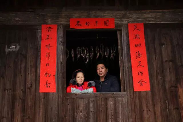 杨再康和妻子彭晨曦在家里的窗前合影(1月16日摄)。42岁的杨再康是十八洞村村民。精准扶贫让村里的大龄青年陆续“脱单”,杨再康就是其中之一。2016年,在浙江宁波打工的杨再康回到家乡,办起了农家乐,加入了猕猴桃种植合作社,并在年底和县城里的姑娘彭晨曦成了家。新华社记者 王婧嫱 摄