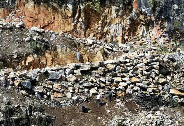 大化瑶族自治县七百弄乡古竹村的群众在悬崖边上修路(2016年8月9日摄)。新华社记者 黄孝邦 摄