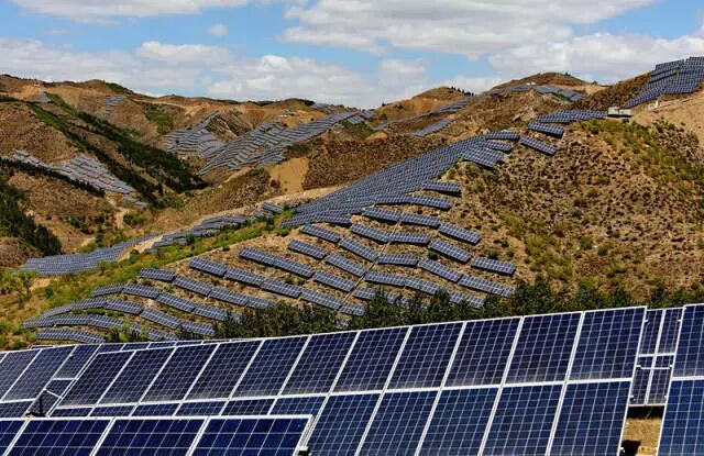 这是赤城县龙关镇玉带山上的光伏发电场(5月11日摄)。河北省张家口市赤城县2015年被国家能源局、国务院扶贫办列入国家首批光伏扶贫试点县以来,利用荒山山场开发建设光伏发电项目,取得良好的效益。新华社记者 杨世尧 摄