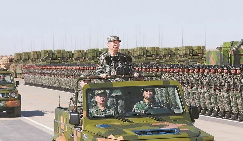 中共中央总书记、国家主席、中央军委主席习近平乘车检阅部队。新华社记者 李 刚摄
